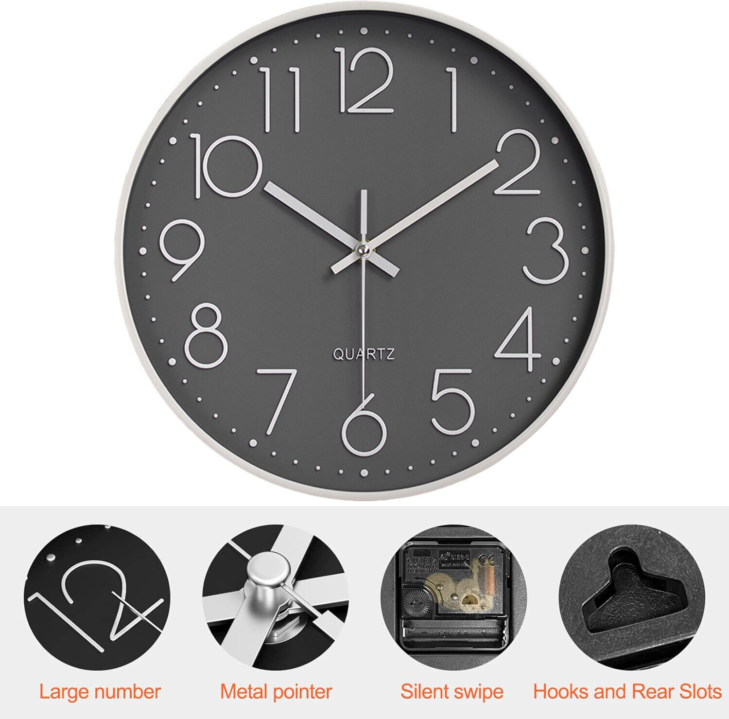 12 Wall Clock Silent Non Ticking Clock For Living Room Bedroom Kitchen Office
