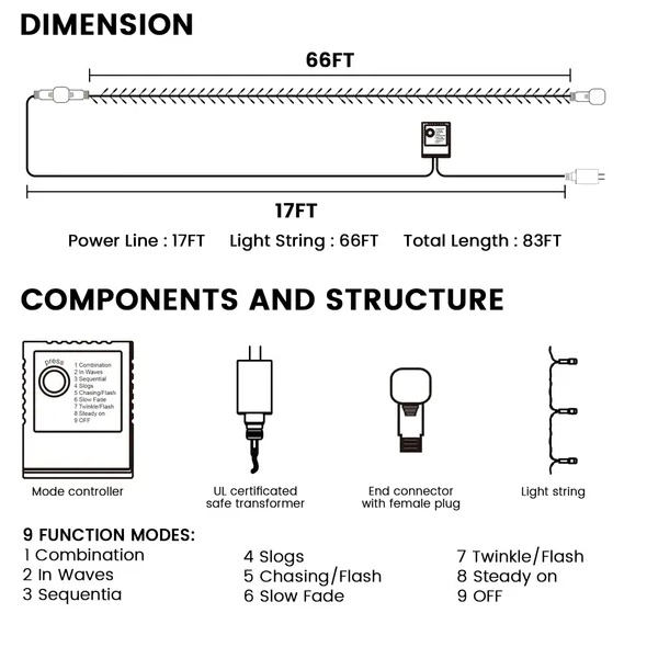 These versatile LED string lights span an impressive 66 feet, with an additional 17 feet of power cord, making the total length 83 feet.