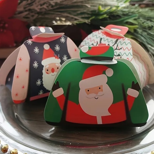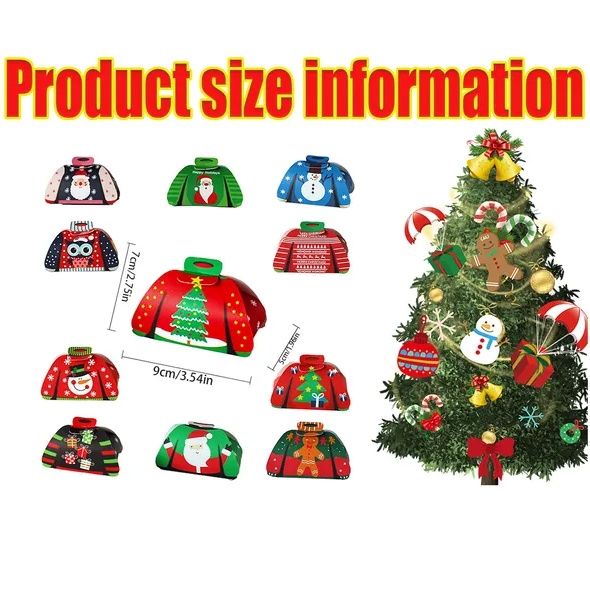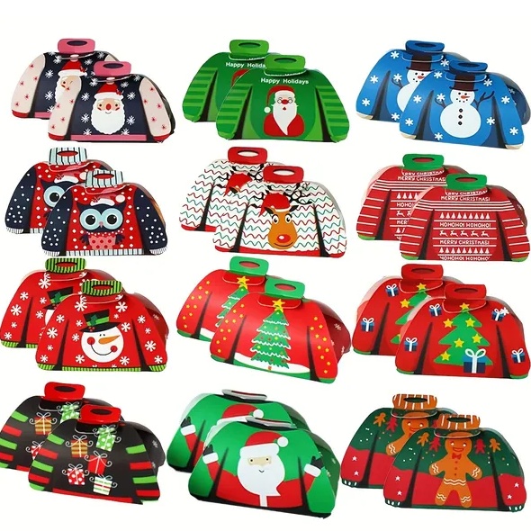 Specifications Material: Paper Color: Red, Green, Red, Black, Blue Size: 9*7*5cm/3.54*2.75*1.96inch Package contents: 24Pcs Christmas Sweater Treat Boxes