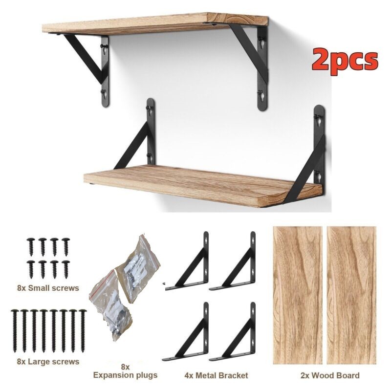 2x Wooden Floating Shelves Wall Mounted Display Storage Hold Rustic Industrial2x Wooden Floating Shelves Wall Mounted Display Storage Hold Rustic Industrial