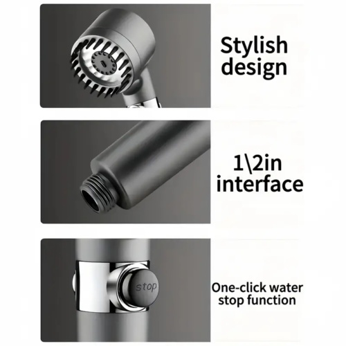 It is a high pressure shower head with handheld. Revolutionary micro-nozzle technology makes the shower head high pressure outlet hole smaller and denser, increasing both the flow speed and the water pressure. At the same time, water saving can reach 30%.