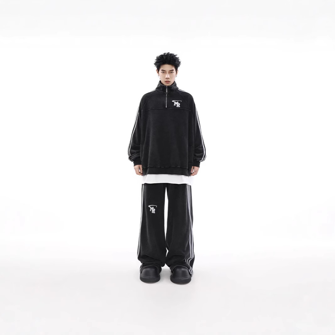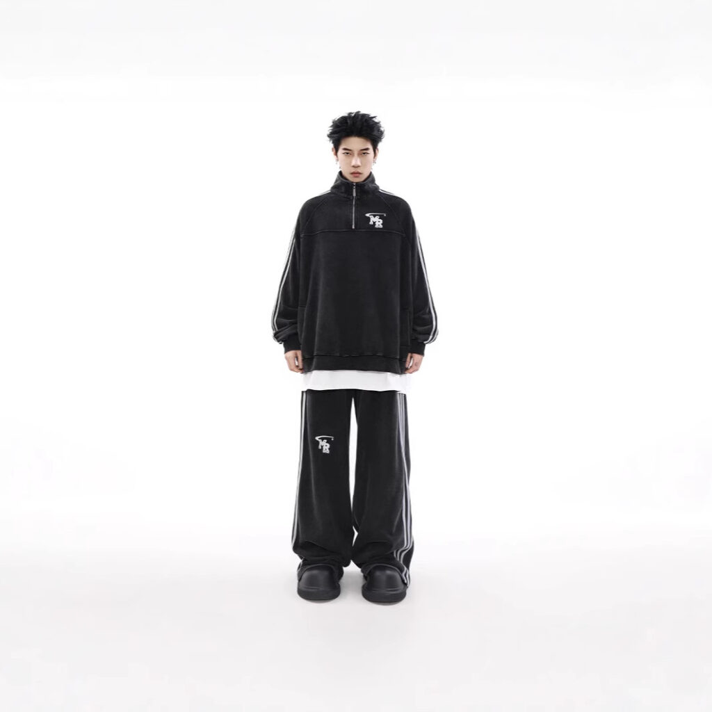 American Retro Casual Sports High Street Stand Collar Couple Sweater