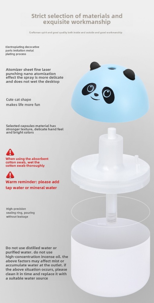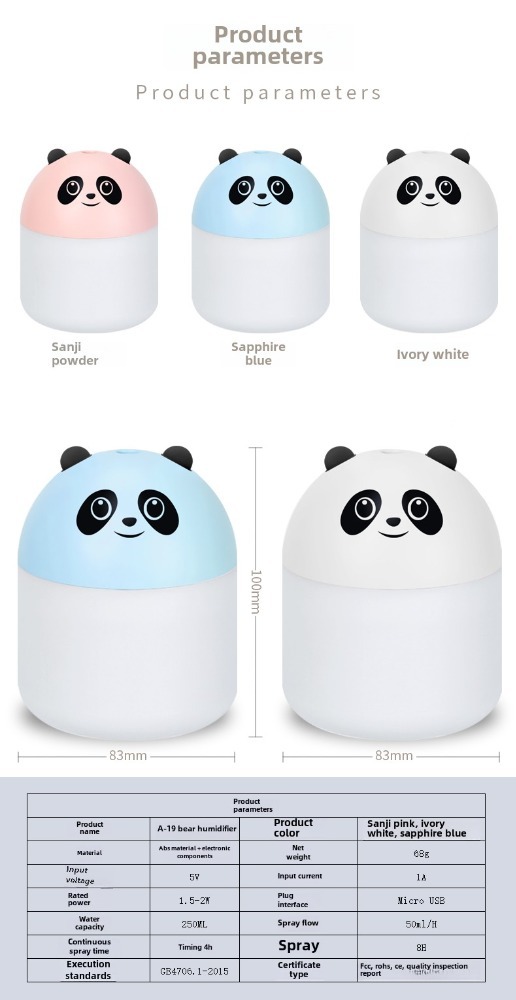 Cute Panda Humidifier, Applicable To Multiple Scenarios Like Bedrooms And Desktops. With Nano-fine Mist For Moisturizing And Quiet Operation To Ensure A Peaceful Sleep.