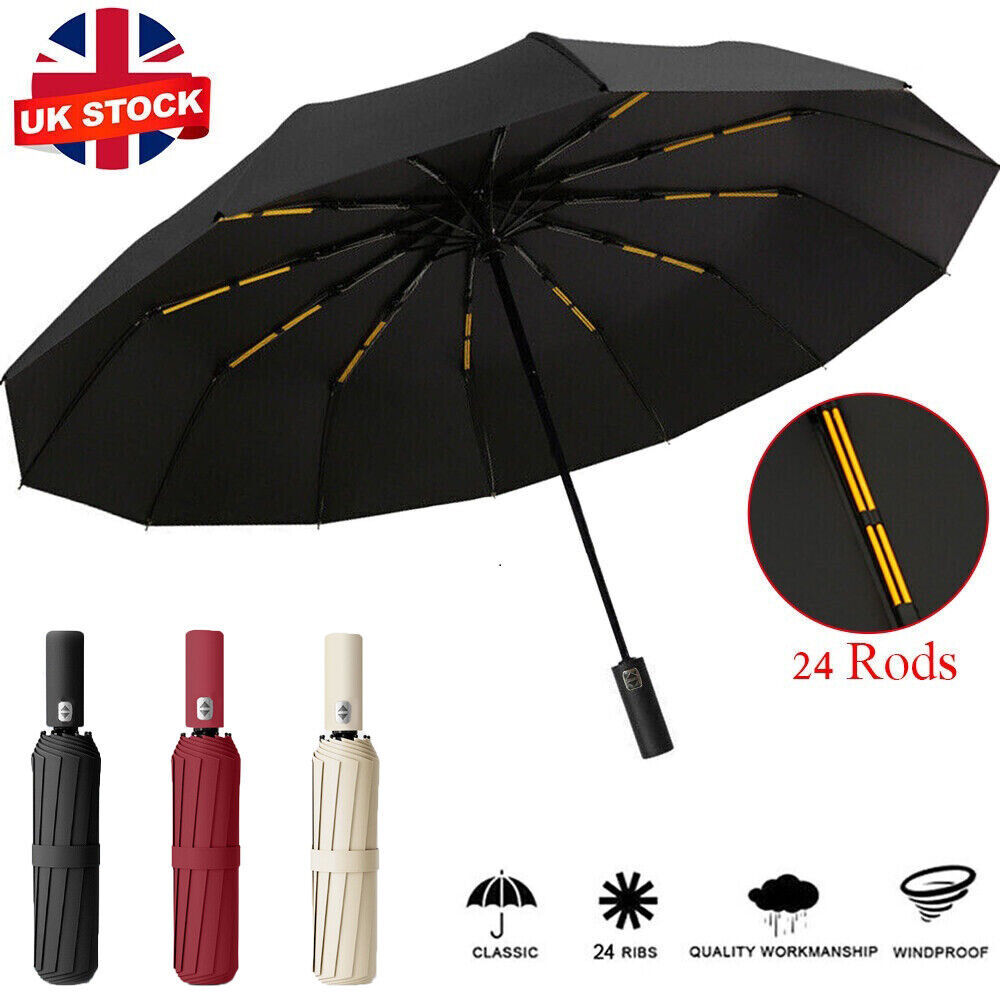 Extra Strength foldable 24 Rods Umbrella Fully Automatic Large UV Protect Rain