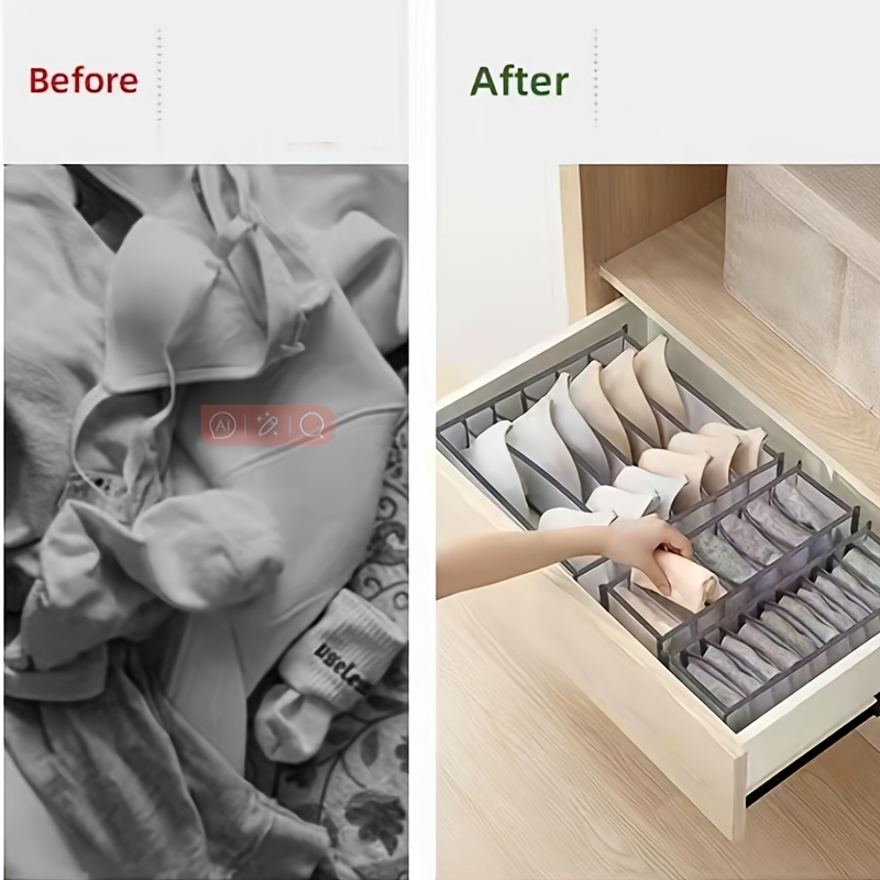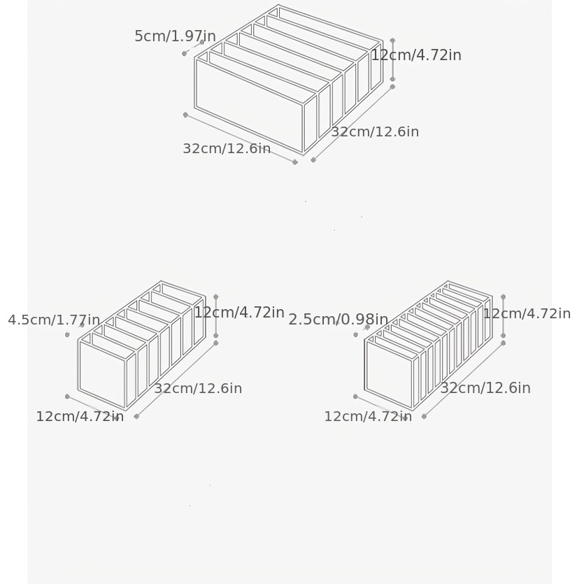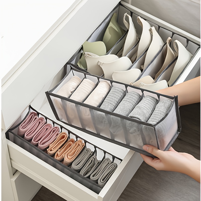 Underwear storage grid three-piece set (6 grids + 7 grids + 11 grids), household underwear storage box, underwear storage artifact formatted storage grid, socks, underwear sorting box mesh, can be used for underwear, socks, tie sorting and storage