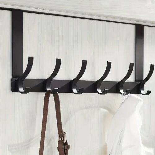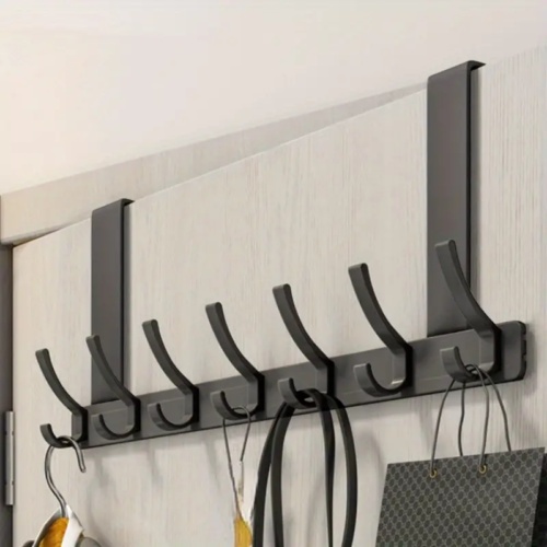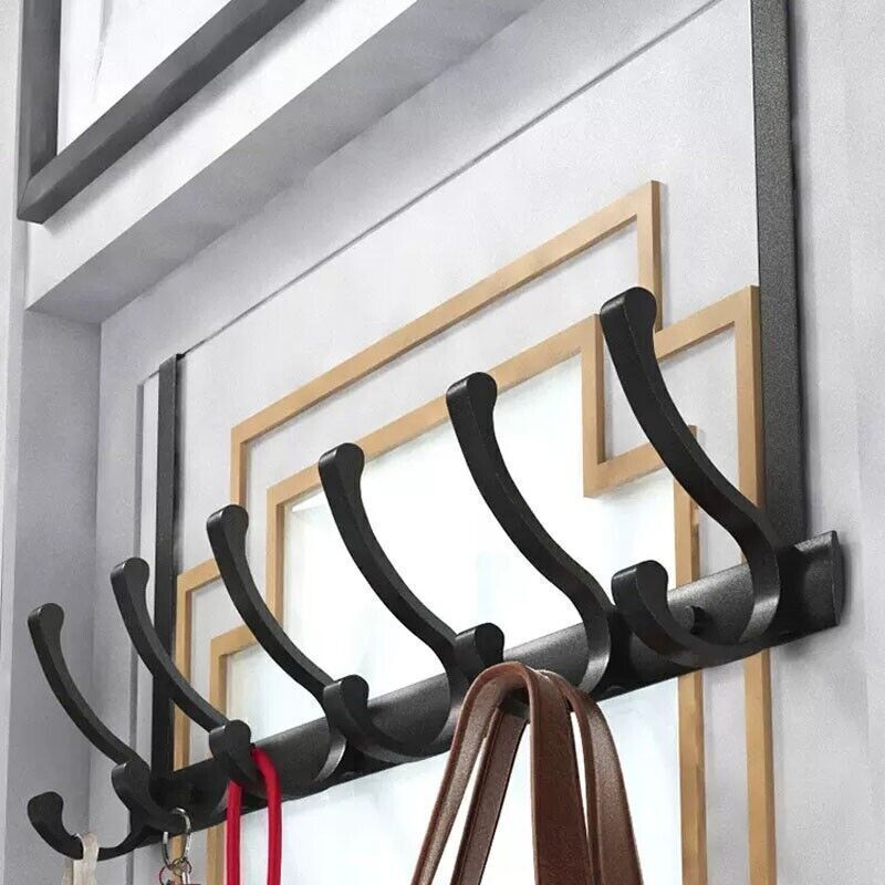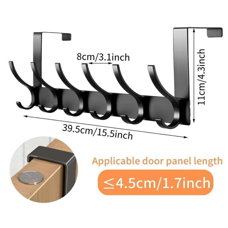 EASY INSTALLATION & USE – No drilling needed. just insert two hanging brackets into this door hanger hook and hang it over your door. 6 large hooks organize scarves, belts, ties, shirts, jackets, robes, towels, handbags, jewelry, caps, hats, keys, umbrellas, and other accessories.Great for bathroom, bedroom, kitchen and office etc.