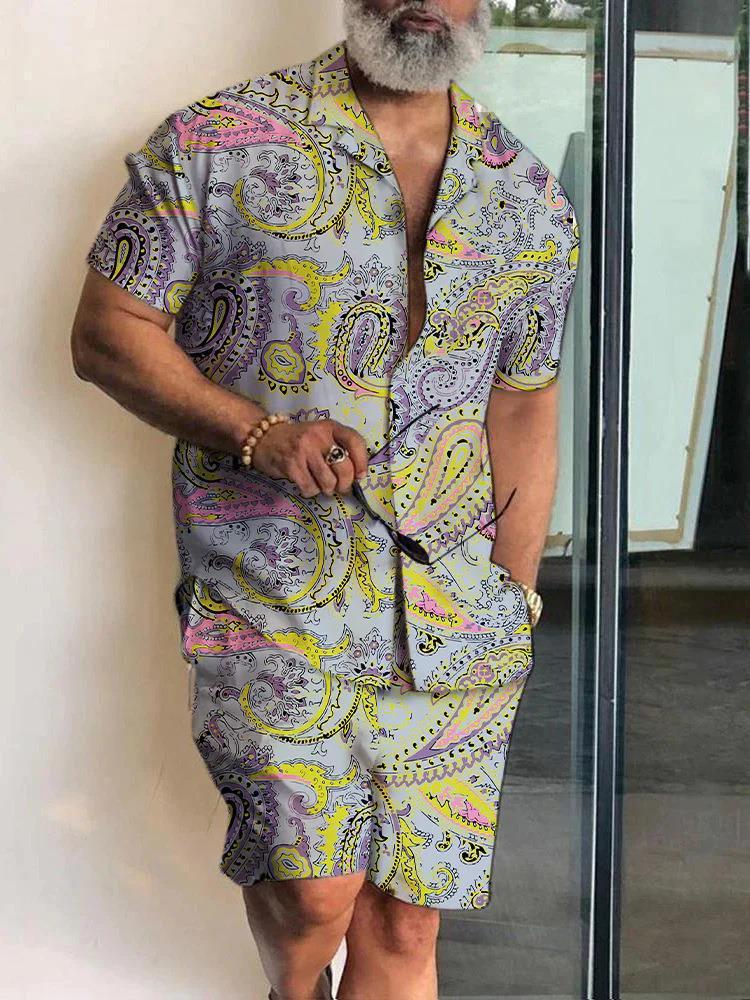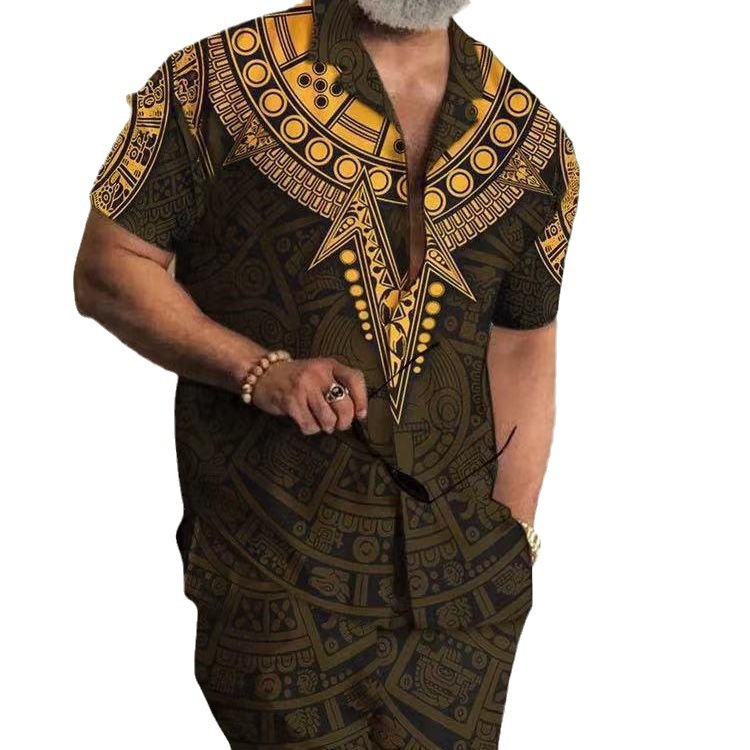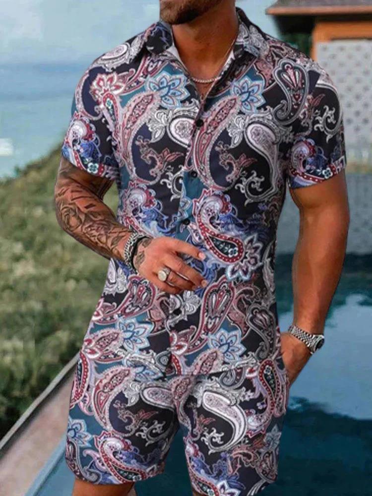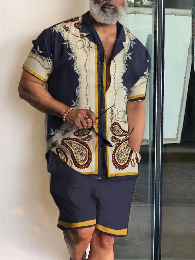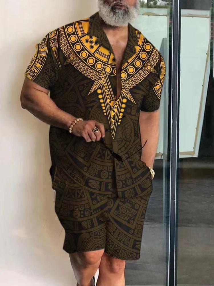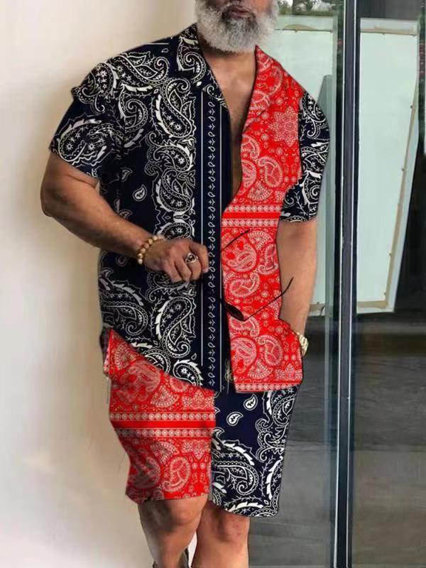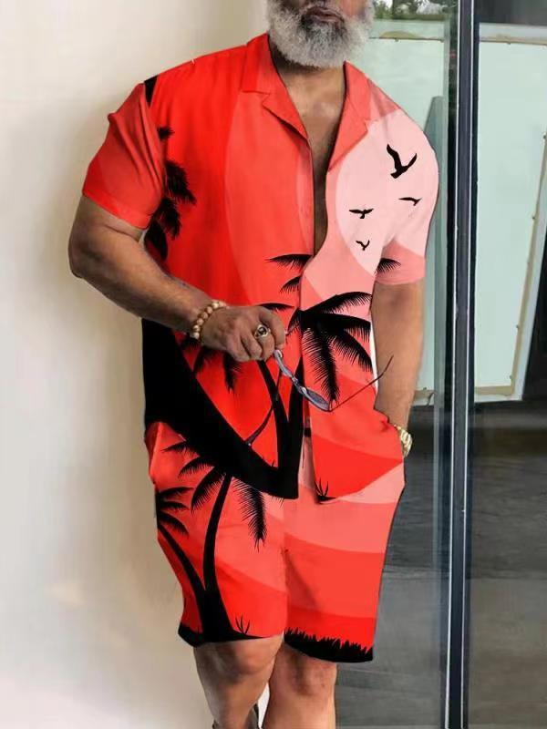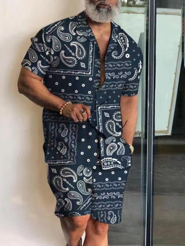 Men's New Polo Collar 3D Printed Casual Slim Fit Shirt Shorts SuitMen’s New Polo Collar 3D Printed Casual Slim Fit Shirt Shorts Suit