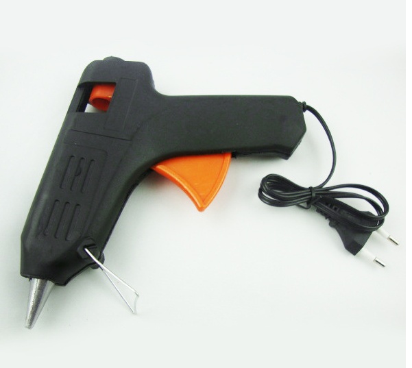 2. Insert the hot melt glue stick from the back of the hot melt glue gun, pull the trigger, let the glue stick enter the glue gun, plug in the power supply, and let the glue gun preheat for 5 minutes;