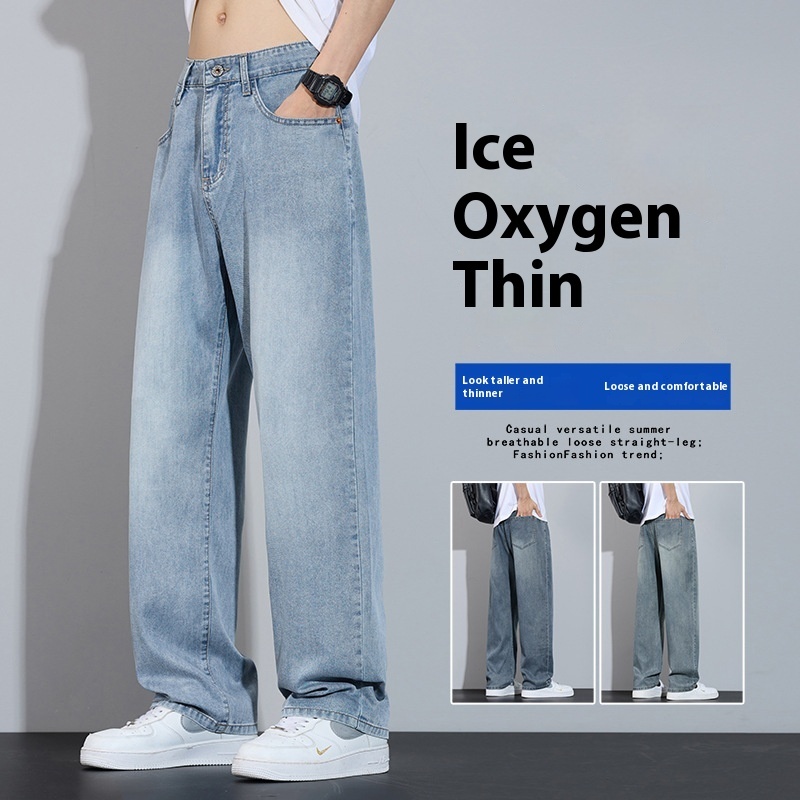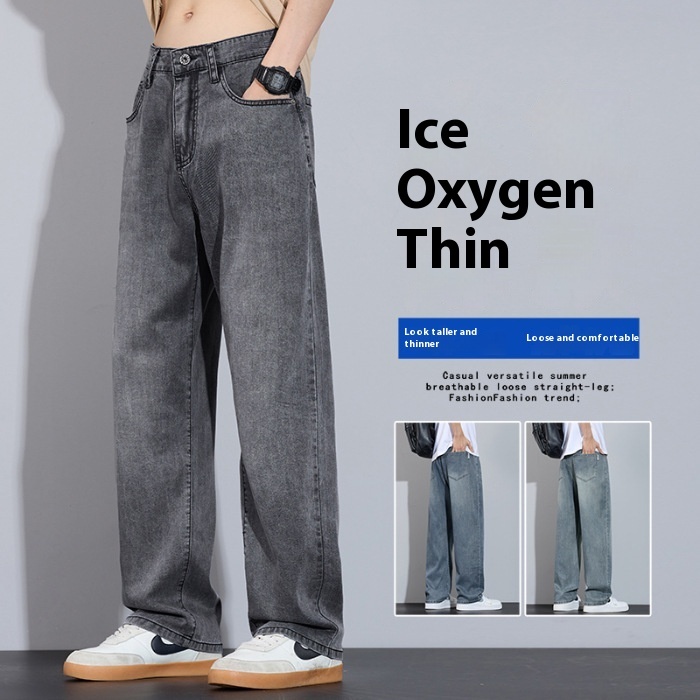 Straight Casual Ice Oxygen Bar Ice Silk Wide Leg Trousers