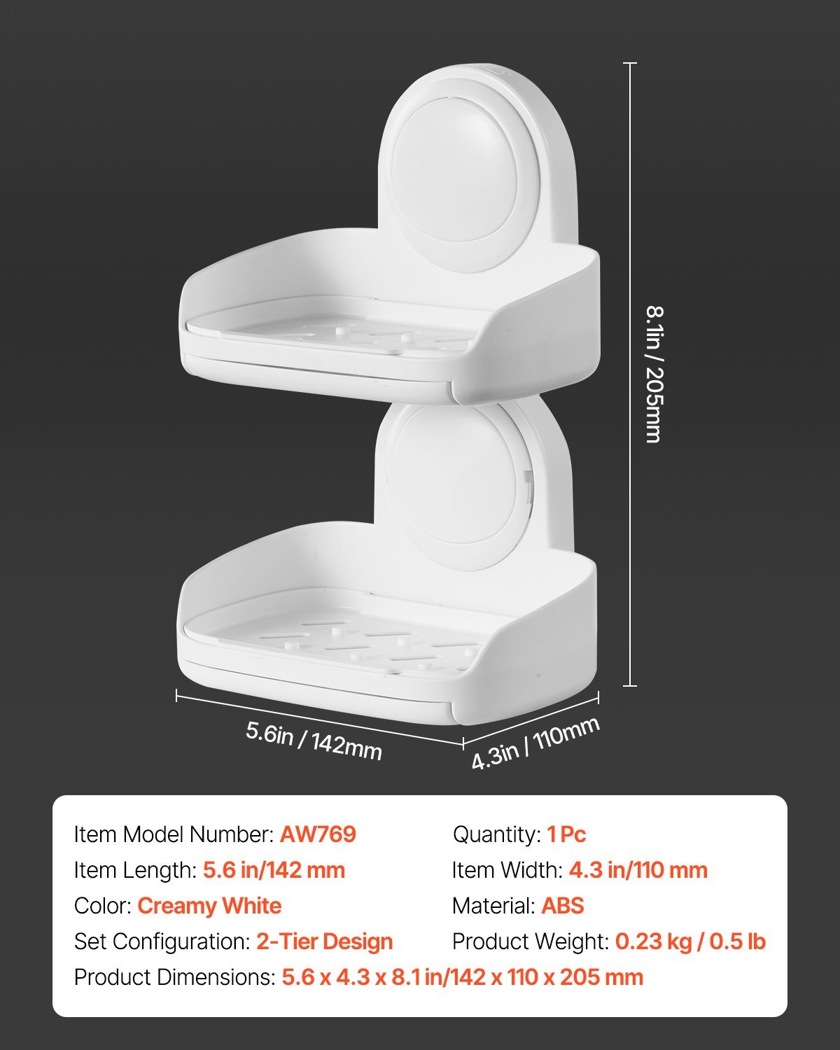 Suction Cup Soap Dish With Double Layer Holder With Drain Tray For Shower