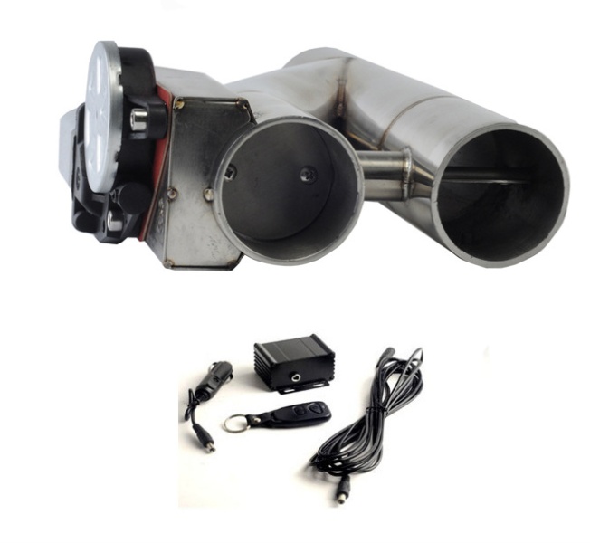 3 inch 2.5 inch stainless steel double outlet exhaust pipe tail throat, chimney universal sound wave remote control Y type exhaust valve